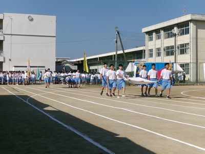 水島工業高等学校第64回体育大会が、快晴の天気のもと予定通り開催されています。