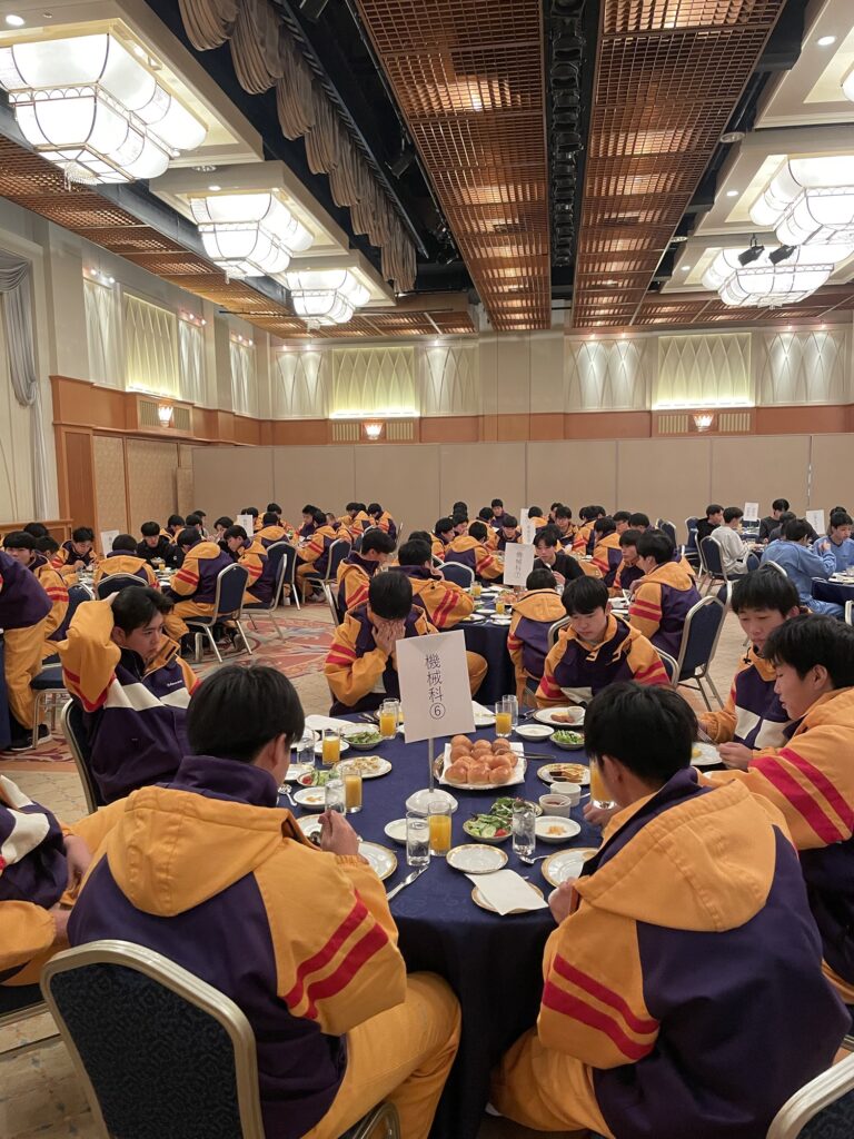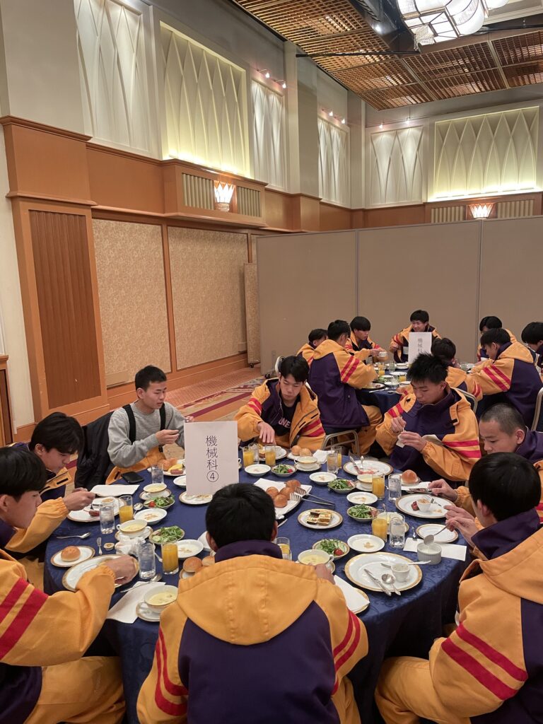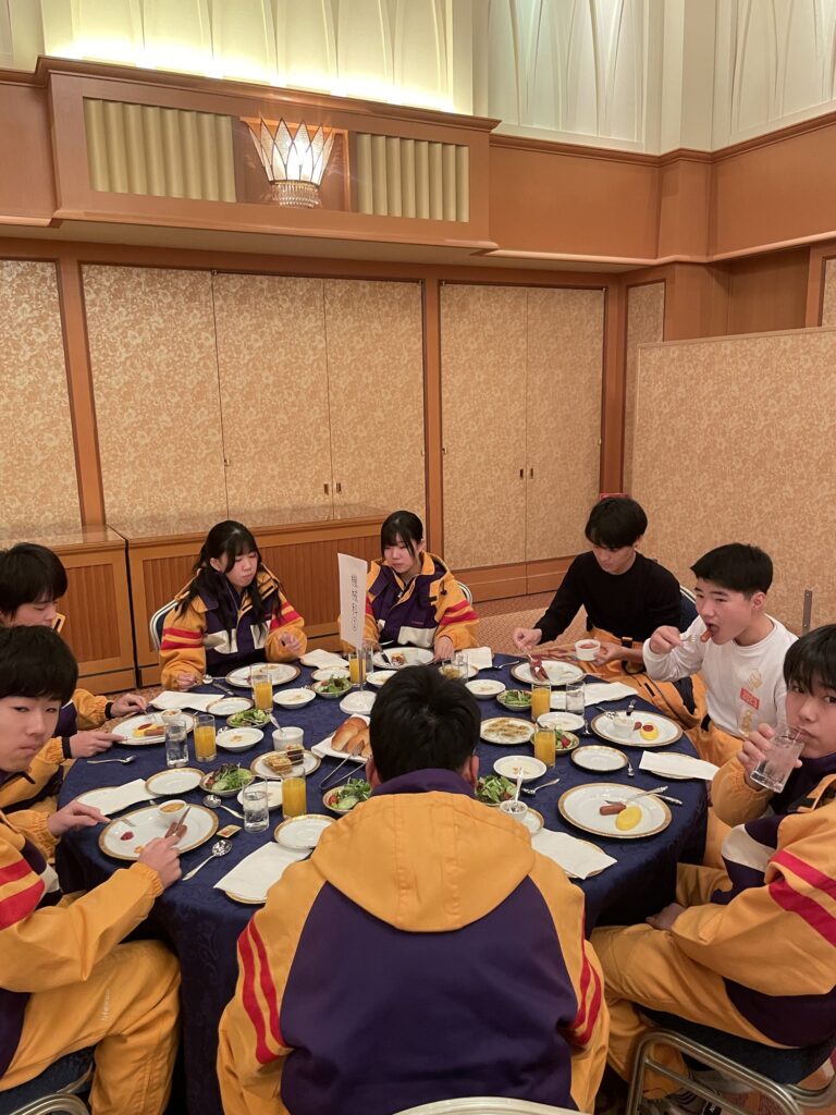 眠たい様子ですが、このあとのスノーボードに備えて朝ごはんを食べています。