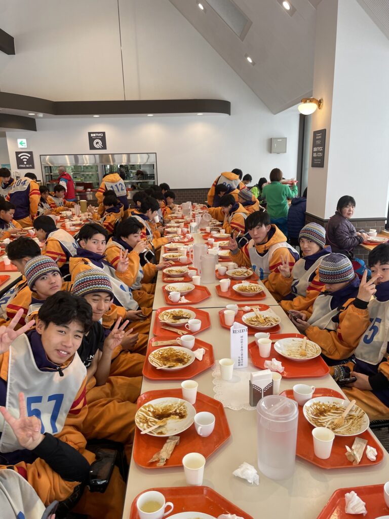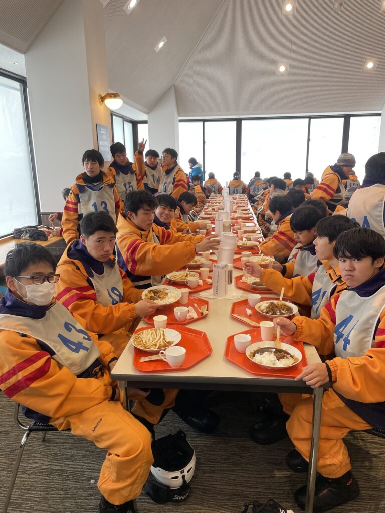 みんなでカツカレーを食べました。おかわりもして元気いっぱいの状態で滑りに行きました。