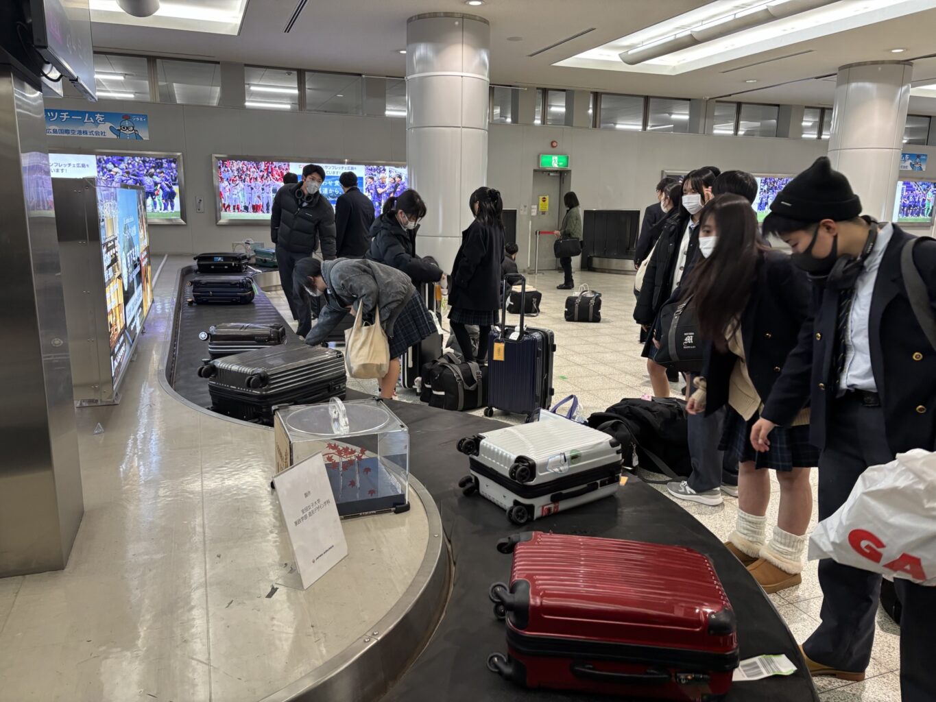 これからバスで学校へ向かいます。19時ごろ到着予定です。