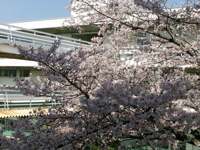 校内の桜は満開状態が続いています。週末の雨でかなり散りそうです。