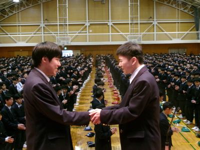 1年生と2・3年生がはじめて顔を合わせる対面式が行われました。1年生は少し緊張気味です。これから本物を目指す「水工」を一緒に築き上げていきましょう。
