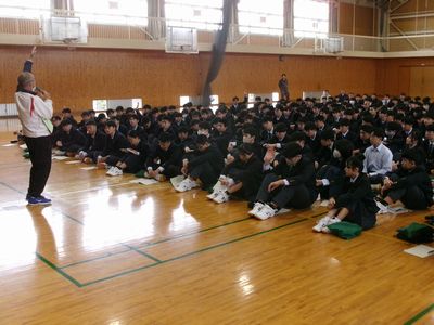 入学して間もない1年生。学校生活が円滑にできるように、オリエンテーションが行われています。真剣な表情で聞いています。