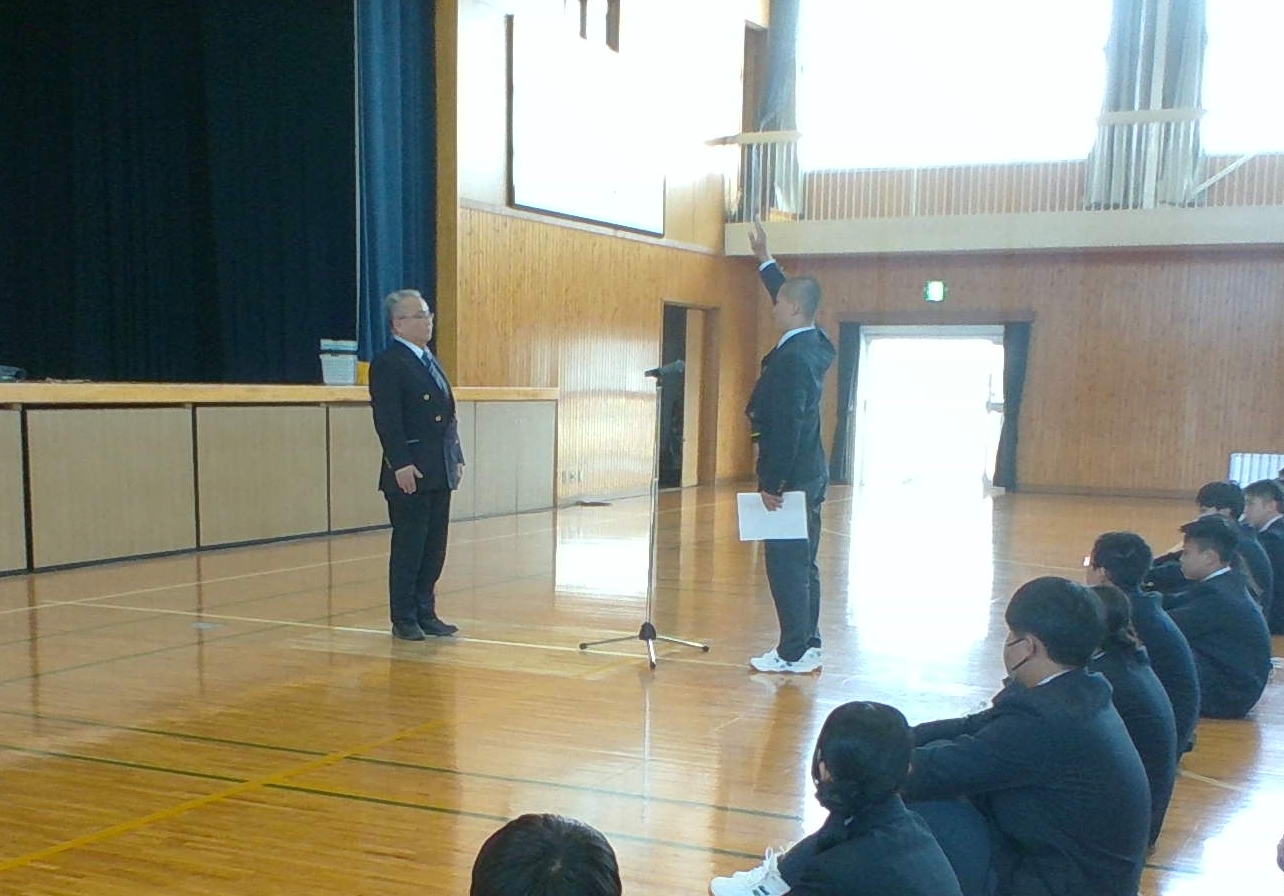 代表生徒の生徒宣誓からはじまり、副校長先生からの激励の言葉、学年主任の先生からの概要説明、各係の先生からの諸説明を受け、校外学習に向けた意識を高める有意義な時間となりました。